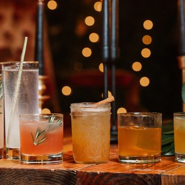 like (and don’t like) and we’ll plan and prep everything for your very own custom bar menu! We offer fresh pressed ingredients, custom syrups, garnishes, specialty ice, and glassware.